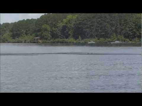 I won't be running that setup again though. I pushed the COG even further back and had my strut way up just to test the extremities of adjustment. Having the strut up that high added angle as well. It would "wheelie" if I wasn't smooth on the throttle. That's why most of the runs in the vid got a running start. It's also not very forgiving of dumb drivers running over their own wake.